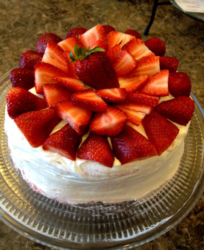 cake strawberry recipe easy strawberries recipes frosting garnish whipped both into used other layer