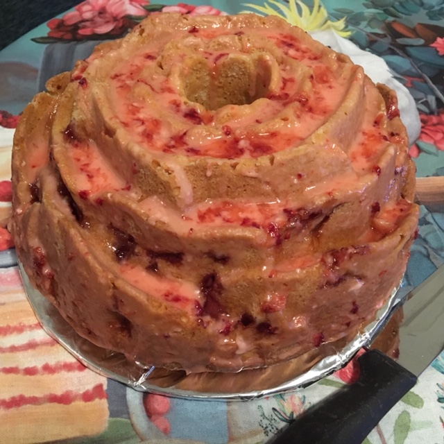 cake strawberry bundt recipe homemade glaze scratch made mix strawberries fresh putting die plus there just icing