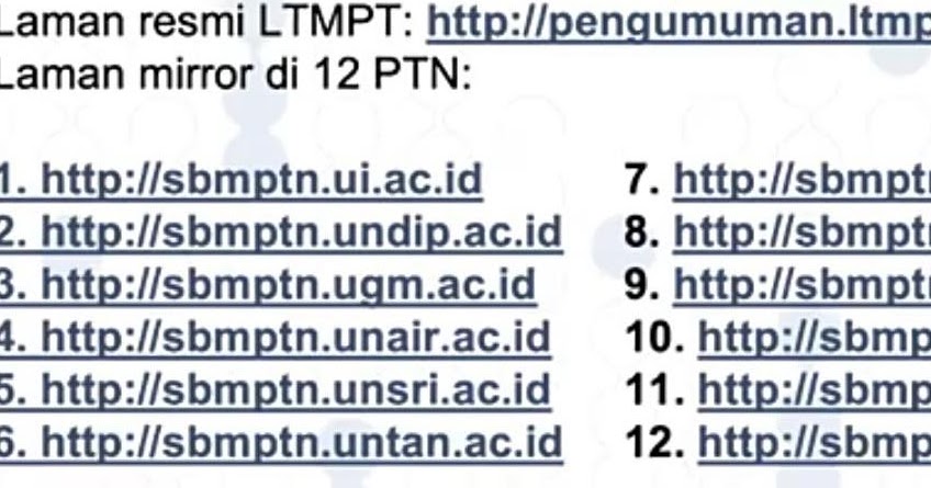 If you are looking for Pengumuman SNMPTN 2022/2023 Hari Ini | Pendaftaran Online 2022/2023 you’ve visit to the right page. We have 35 Pictures about Pengumuman SNMPTN 2022/2023 Hari Ini | Pendaftaran Online 2022/2023 like Link Pengumuman SNMPTN 2022 Lengkap Berikut Cara Cek Hasil Seleksi, pengumuman-sbmptn-ltmpt.ac.id Pengumuman LTMPT SBMPTN 2021 and also Link Pengumuman SNMPTN 2022 Lengkap Berikut Cara Cek Hasil Seleksi. Read more: