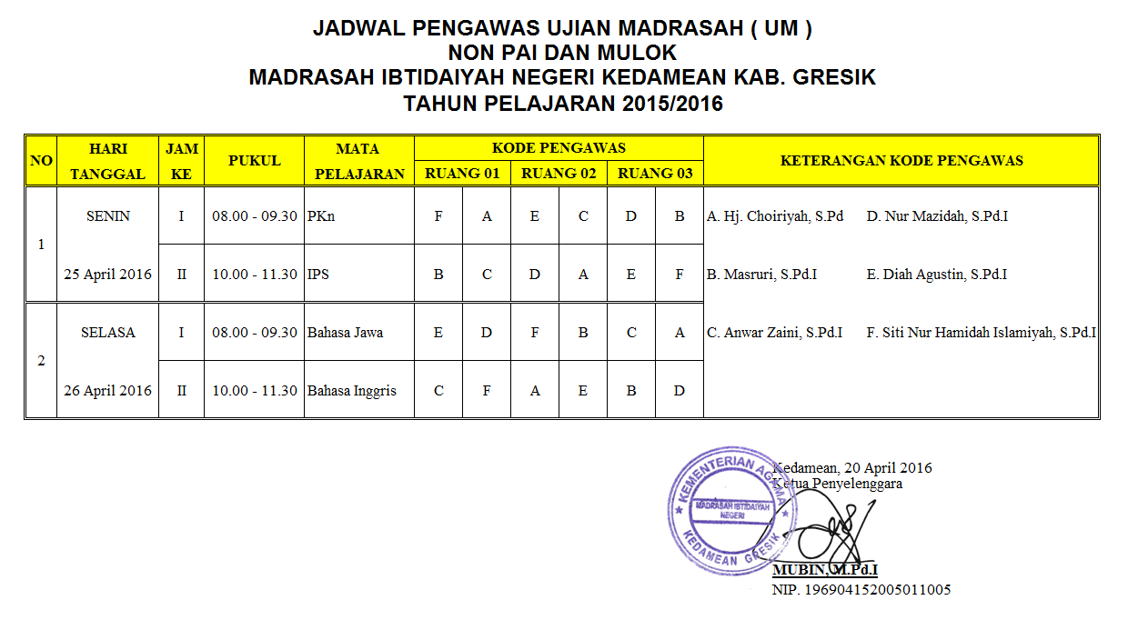 jadwal ujian madrasah uam pai pelajaran mulok muatan lokal