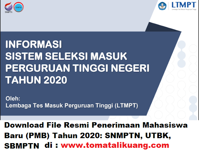 Download File Resmi Pengumuman Pelasanaan SNMPTN, UTBK dan SBMPTN 2020www.tomatalikuang.com